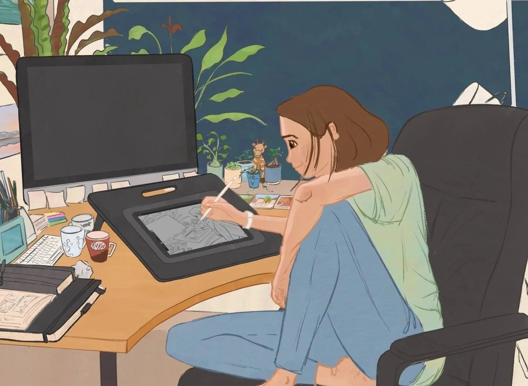 Much of my work is inspired by nature (with a large side order of books and cosy cafes), and the slow moments we can find that help us to rest and reset. I love to tell stories through my work, and particularly enjoy bringing in the small details that bring an extra layer to the narrative, creating worlds that the viewer can step inside and find a moment of escapism from the pressures of reality.